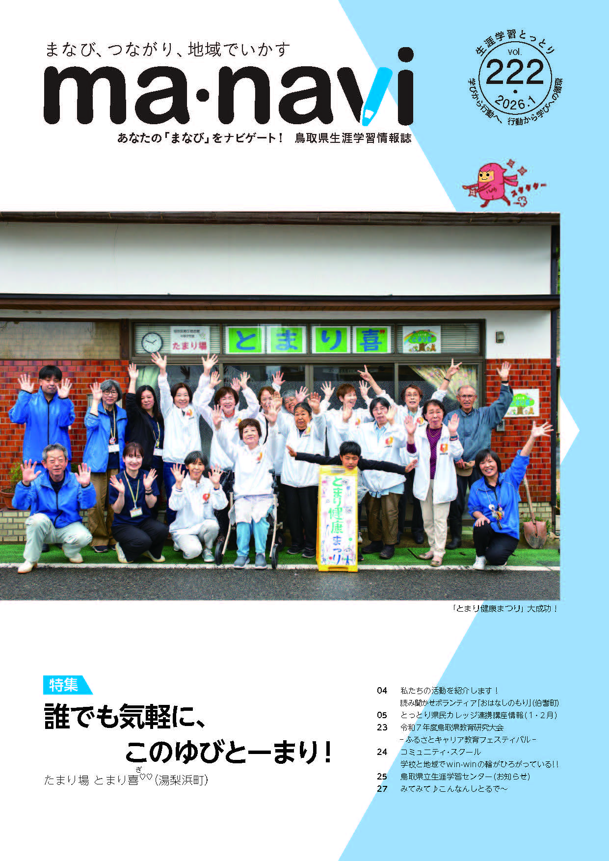 NEWS & Topics 新着情報 ホーム > 新着情報一覧 > お知らせ > 最新号「生涯学習とっとり222号」をご覧ください 2025年12月26日 お知らせ 最新号「生涯学習とっとり222号」をご覧ください 生涯学習とっとり222号 詳しくはこちらをご覧ください。 一覧へ戻る