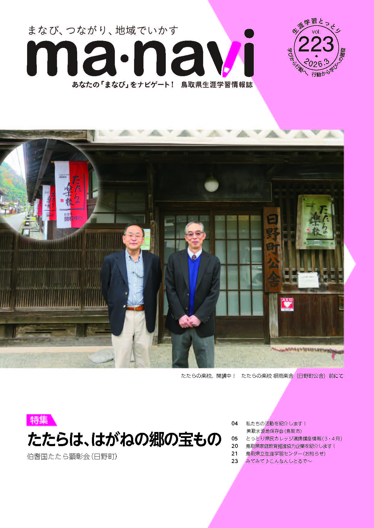 NEWS & Topics 新着情報 ホーム > 新着情報一覧 > お知らせ > 最新号「生涯学習とっとり223号」をご覧ください 2026年2月20日 お知らせ 最新号「生涯学習とっとり223号」をご覧ください 生涯学習とっとり223号 詳しくはこちらをご覧ください。 一覧へ戻る